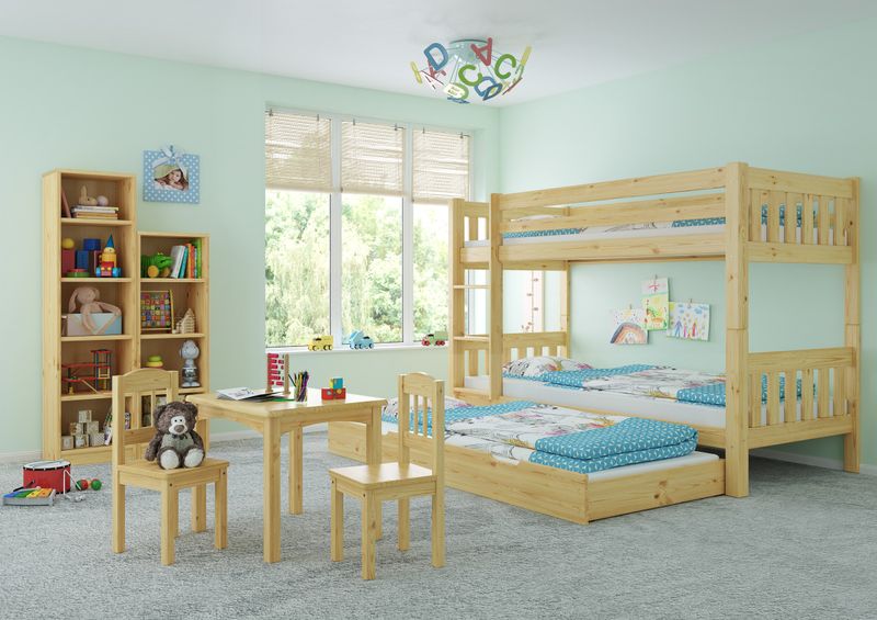 V-60.06-09 - Kinderetagenbett für Kinder Kiefer natur Liegefläche 90x200 cm - Zubehör wählbar