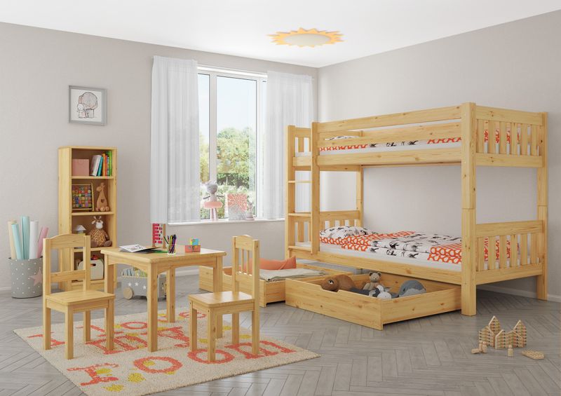V-60.06-09 - Kinderetagenbett für Kinder Kiefer natur Liegefläche 90x200 cm - Zubehör wählbar