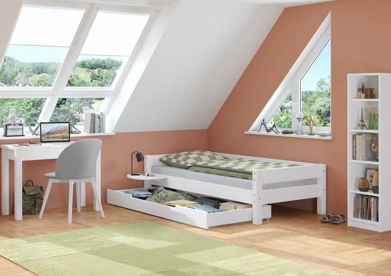 V-60.20W-09 Einzelbett Kiefer natur Liegefläche 90x200 cm - Zubehör wählbar