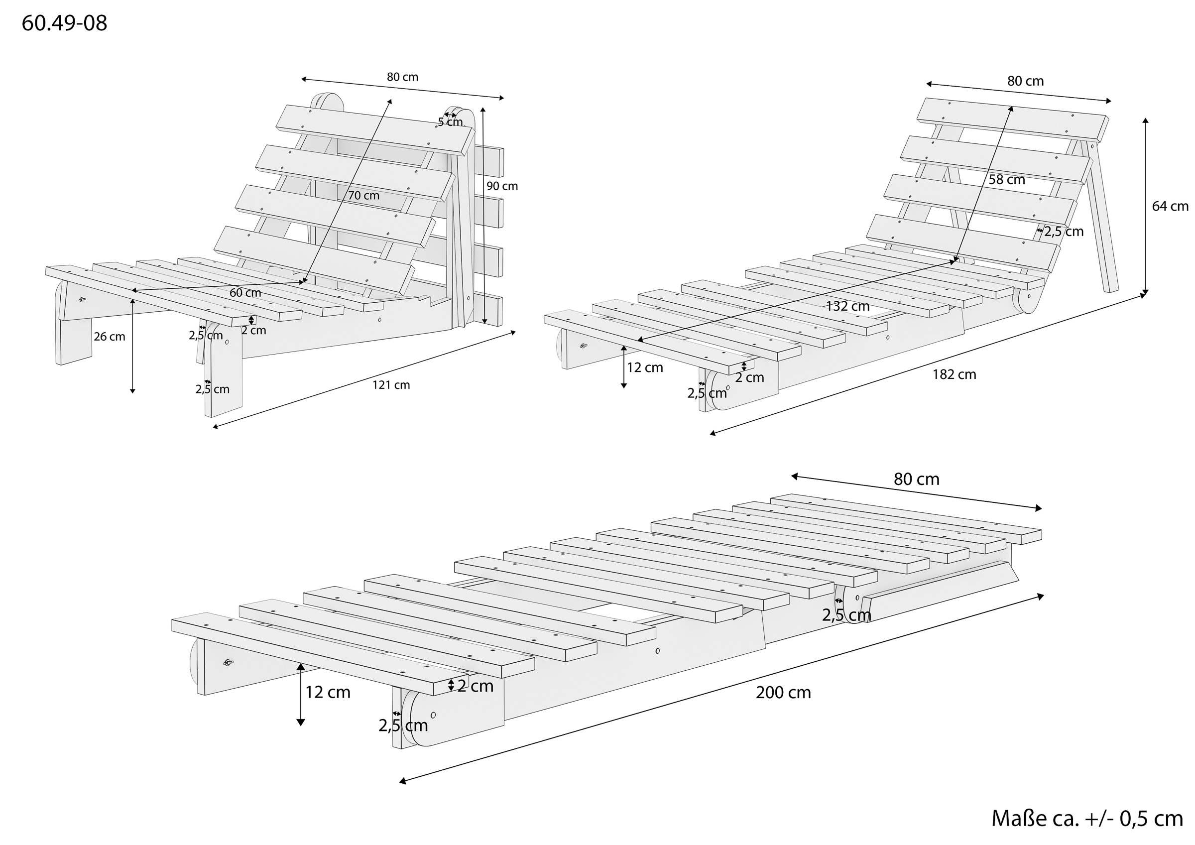 Liegefläche & Außenmaß: ca. 80x200 cm