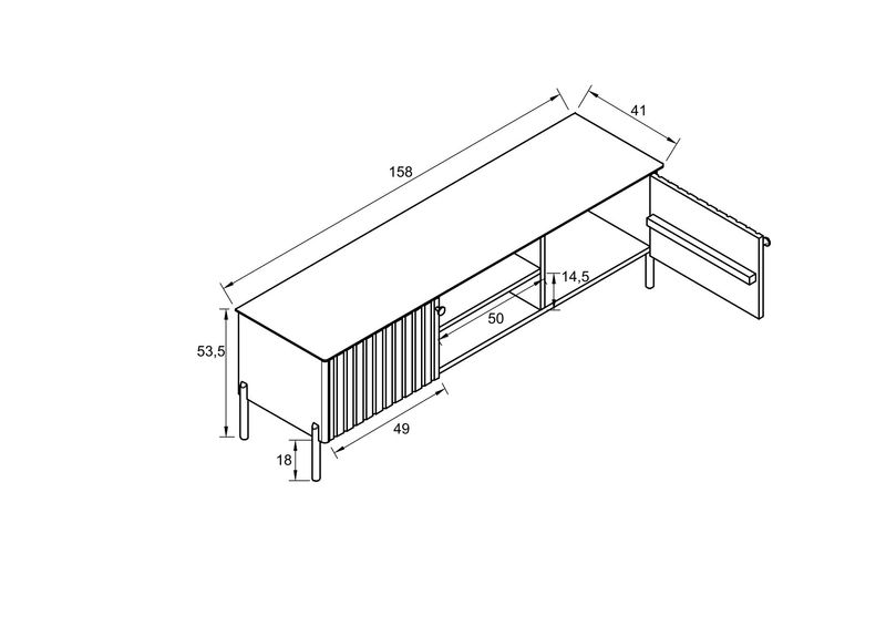 Mit 41 cm Tiefe, 158 cm Breite und 53,5 cm Höhe bietet es die ideale Kombination aus Stauraum und modernem Design.