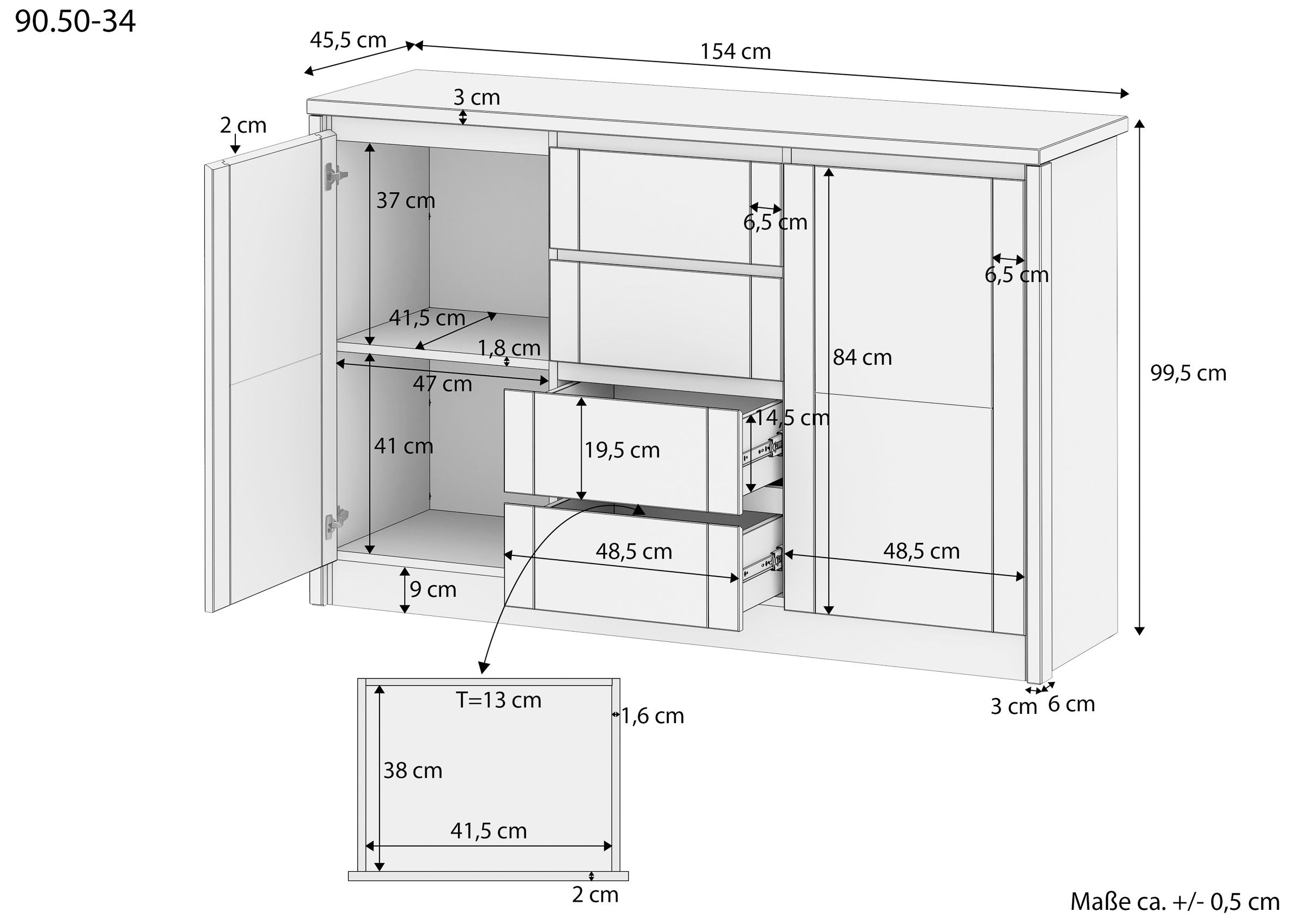 Außenmaße (T x B x H): ca. 45,5 x 154,5 x 99,5 cm