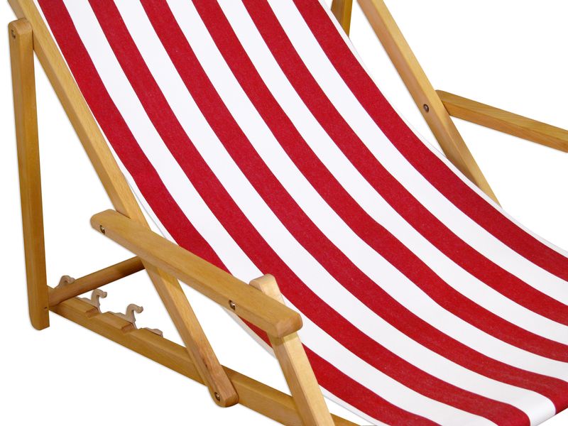 Liegestuhl-Stoff rot-weiß (Lichteinfall kann die Oberflächenfarbe von Massivholz verändern)