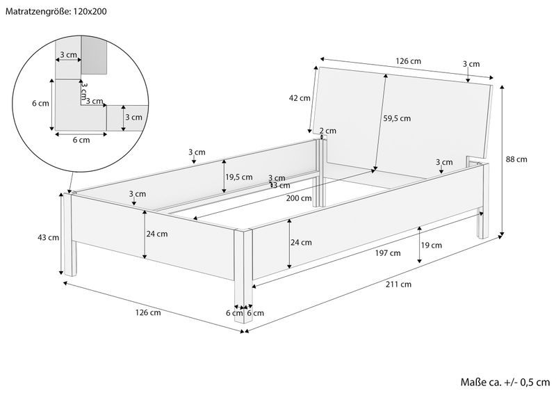 Liegefläche: ca. 120x200 cm