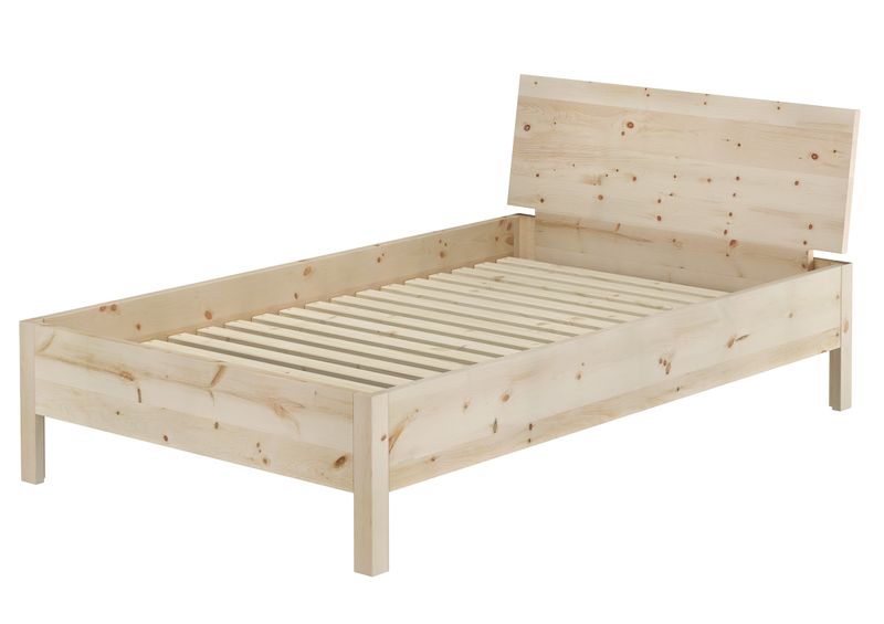 V-60.95-12 Metallfreies Einzelbett Vollholzbett Liegefläche 120x200 Zirbe unbehandelt