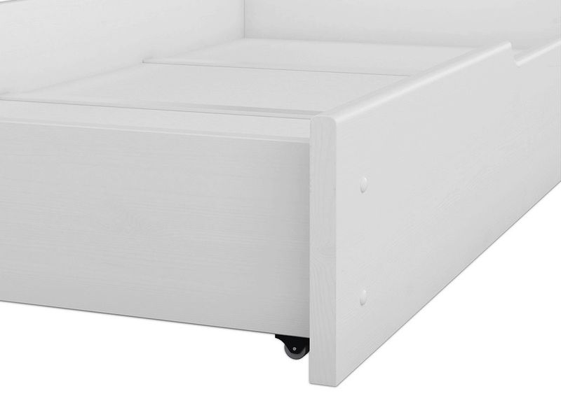 Massiver Bett-Staukasten aus schönem Kiefernholz in weiß (Lichteinfall kann die Oberflächenfarbe von Massivholz verändern)