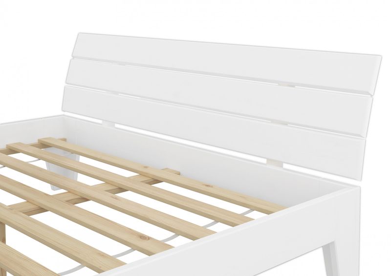 Modernes Futonbett 120x200 - waschweiß (Lichteinfall kann die Oberflächenfarbe von Massivholz verändern)