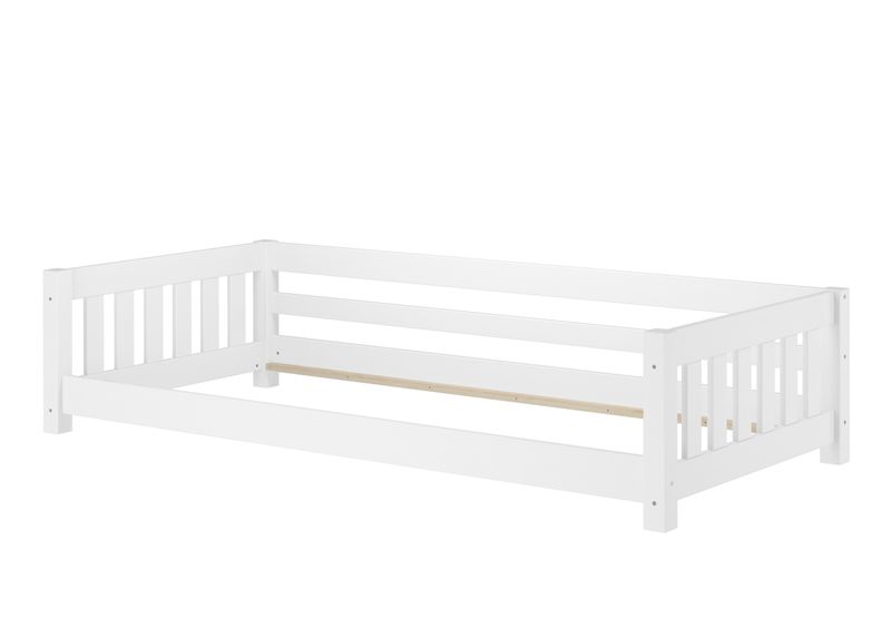 B-WARE Weißes Niederflurbett für Kinder 90 x 200 cm Kiefer Massiv