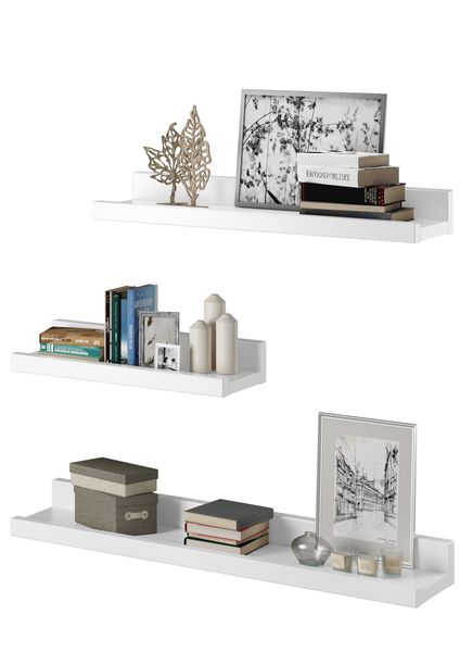 B-WARE Weißes Wandregal 70 Massivholz Bilderleiste