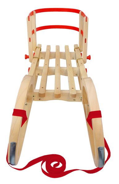 Die rote Ziehleine ist ca. 110 cm lang und verleiht Ihrer Rodel eine elegante Note. Je nach Ausstattungsvariante kann man diesen Massivholzschlitten schieben oder ziehen.
