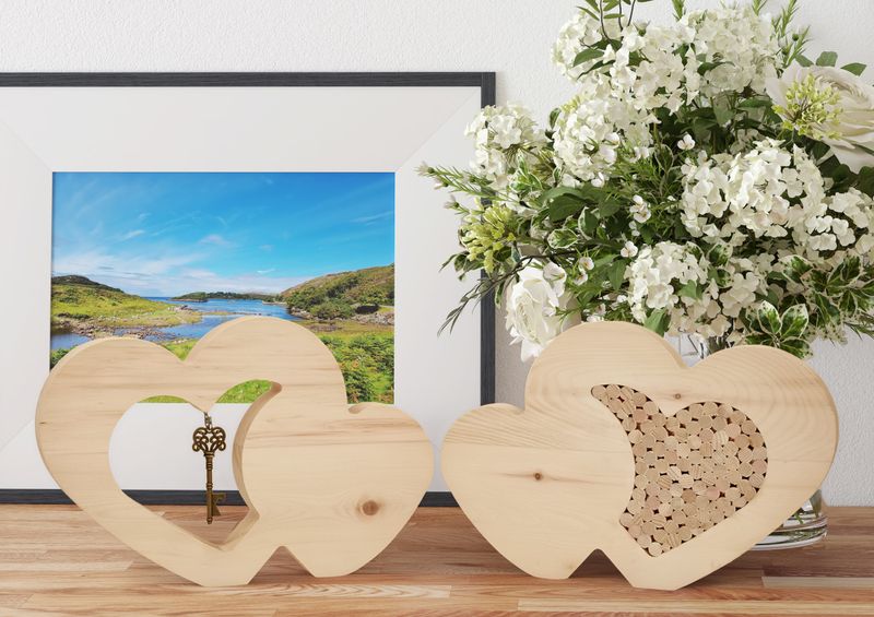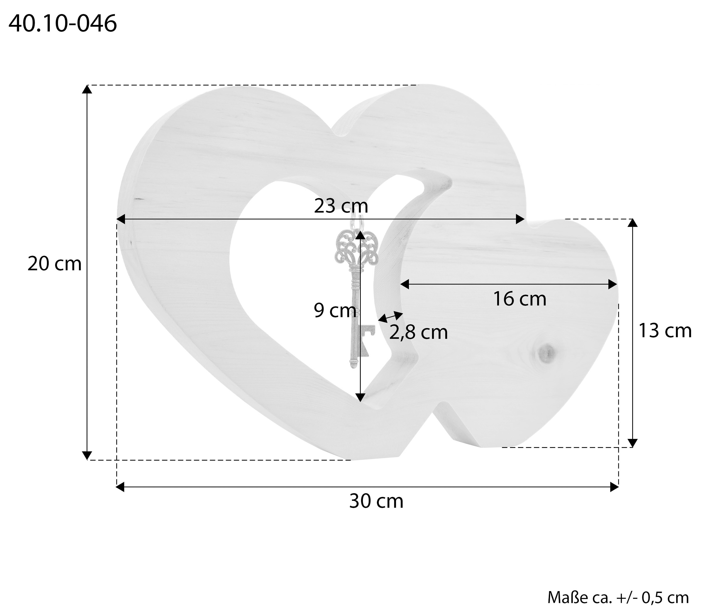 Besonders praktisch ist die massive Kante von 2,8 Zentimetern; diese Stärke erlaubt es Ihnen, das Doppelherz flexibel zu dekorieren.